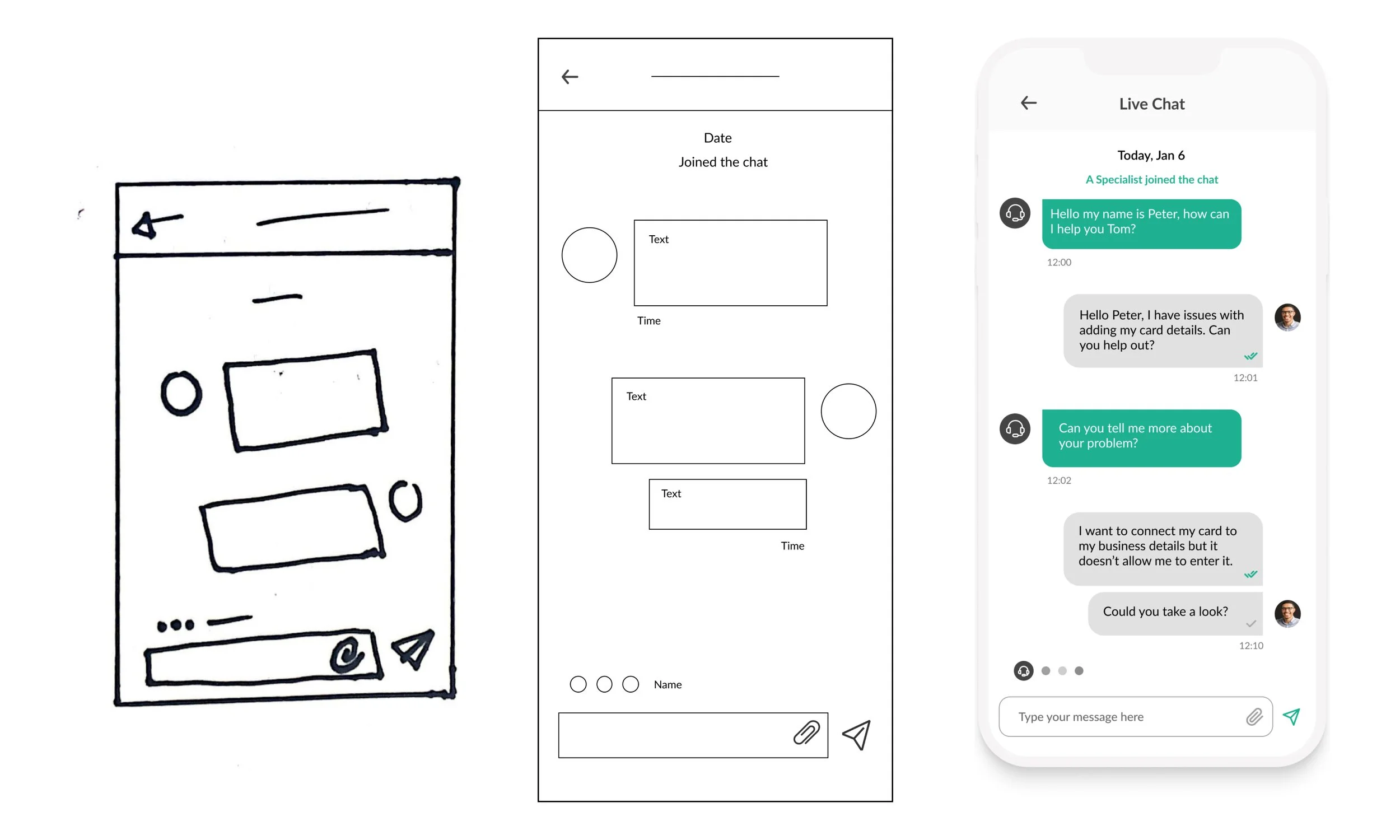 I first researched existing user interfaces of live chats from bank apps, other designers on Figma and Whatsapp. I then sketched a mockup and designed a simple wireframe on Figma. After the wireframe I designed the prototype on Figma.